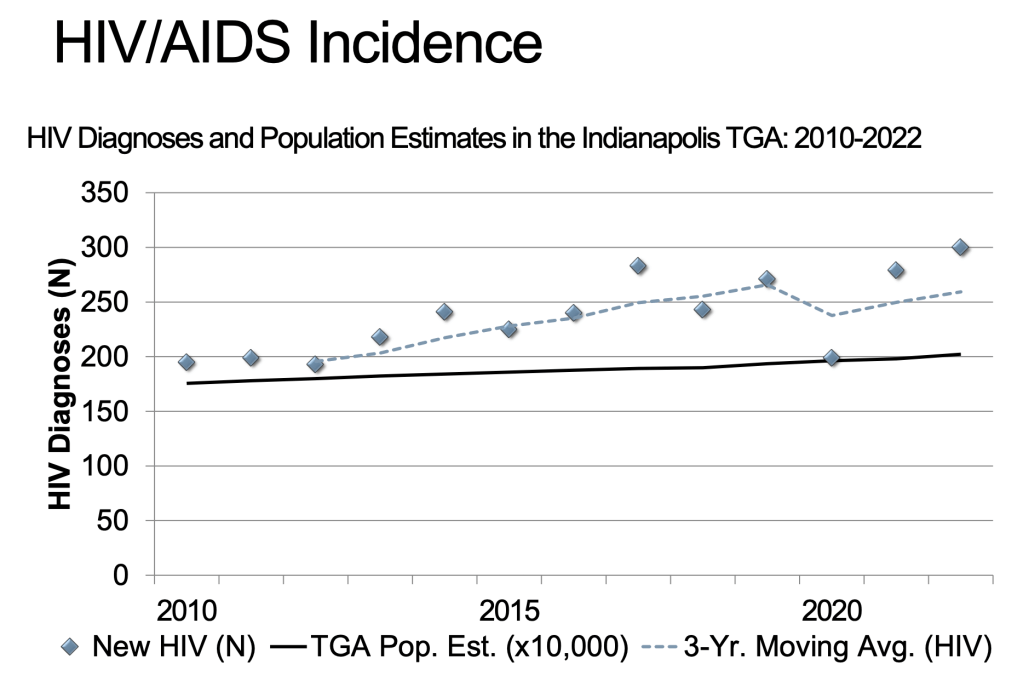 We need more people to get tested! We need more people to know their status. We literally need to find the 964 people in Marion & surrounding counties who don’t know their status. Hopefully, the rate shown earlier will begin to go down as more and more people get tested. But in the meantime, it will probably continue to rise as we close the gap on people not knowing their status.
