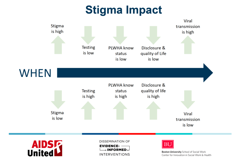 For me this chart sums it all up: when stigma is low, testing is high! When testing is high, people know their status – they aren’t afraid to tell others their status – and we curb the transmission of the virus.