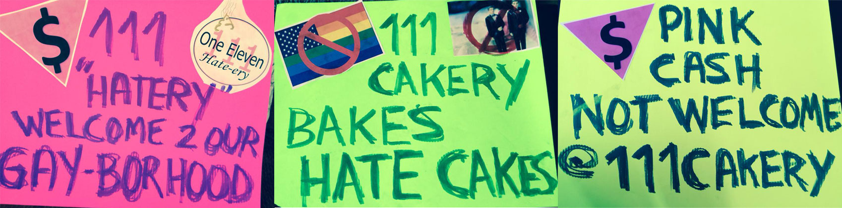 So today was the third week of protesting 111Cakery’s decision to turn down a same-sex couple’s business. The bakery refused to make a cake for the couple’s wedding celebration because doing so goes against the owners’ religious beliefs.