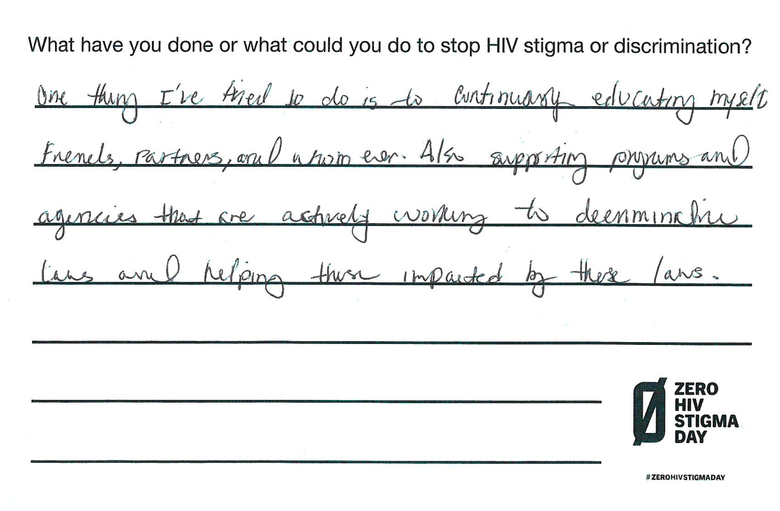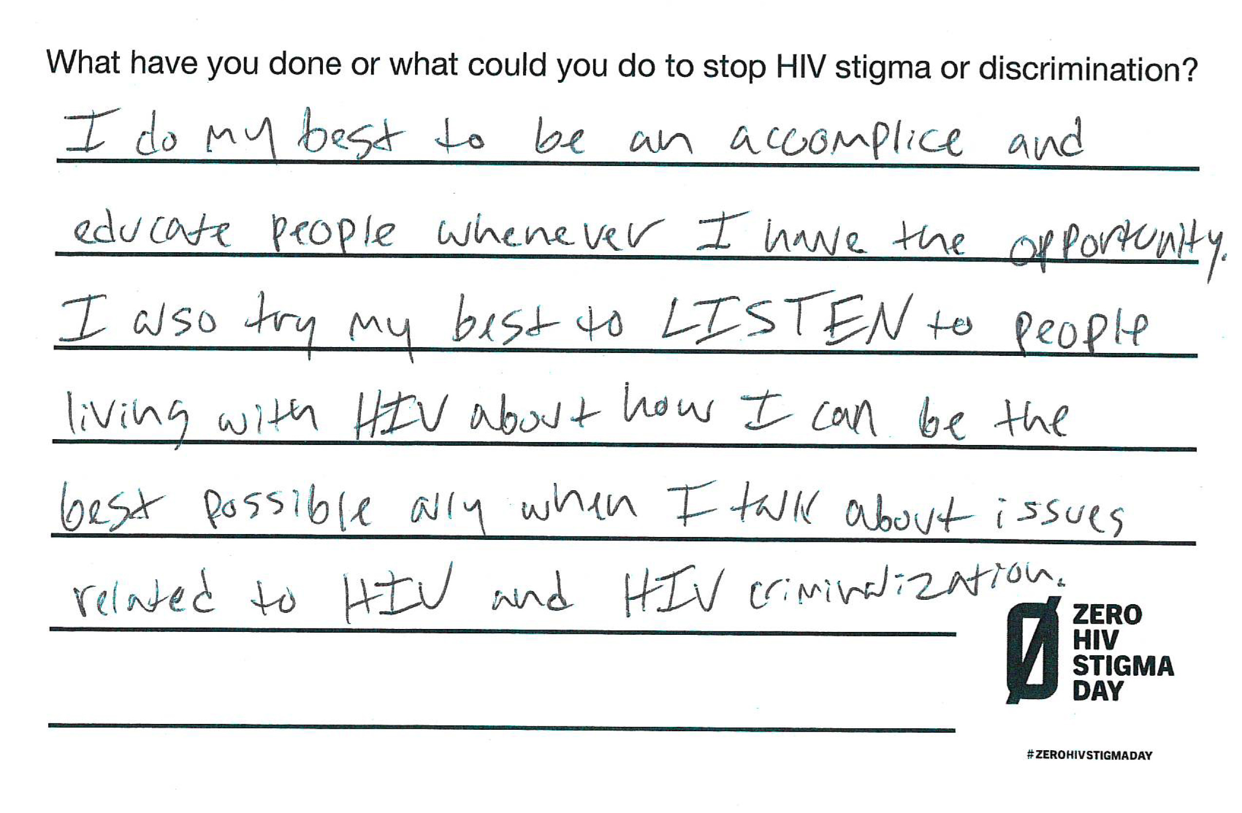 There is also an opportunity for allies to participate, sharing instead what they have done or could do to stop HIV stigma or discrimination.